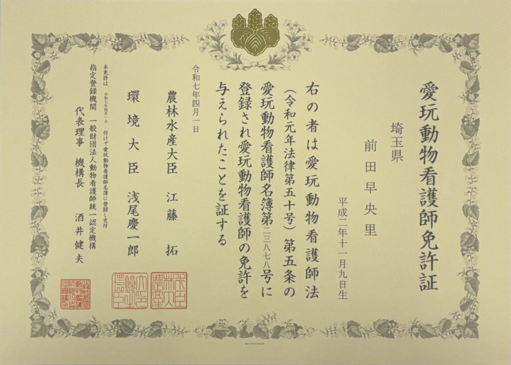 国家資格「愛玩動物看護師」および「歯科衛生士」の両方を持つ口腔ケアの専門家です。